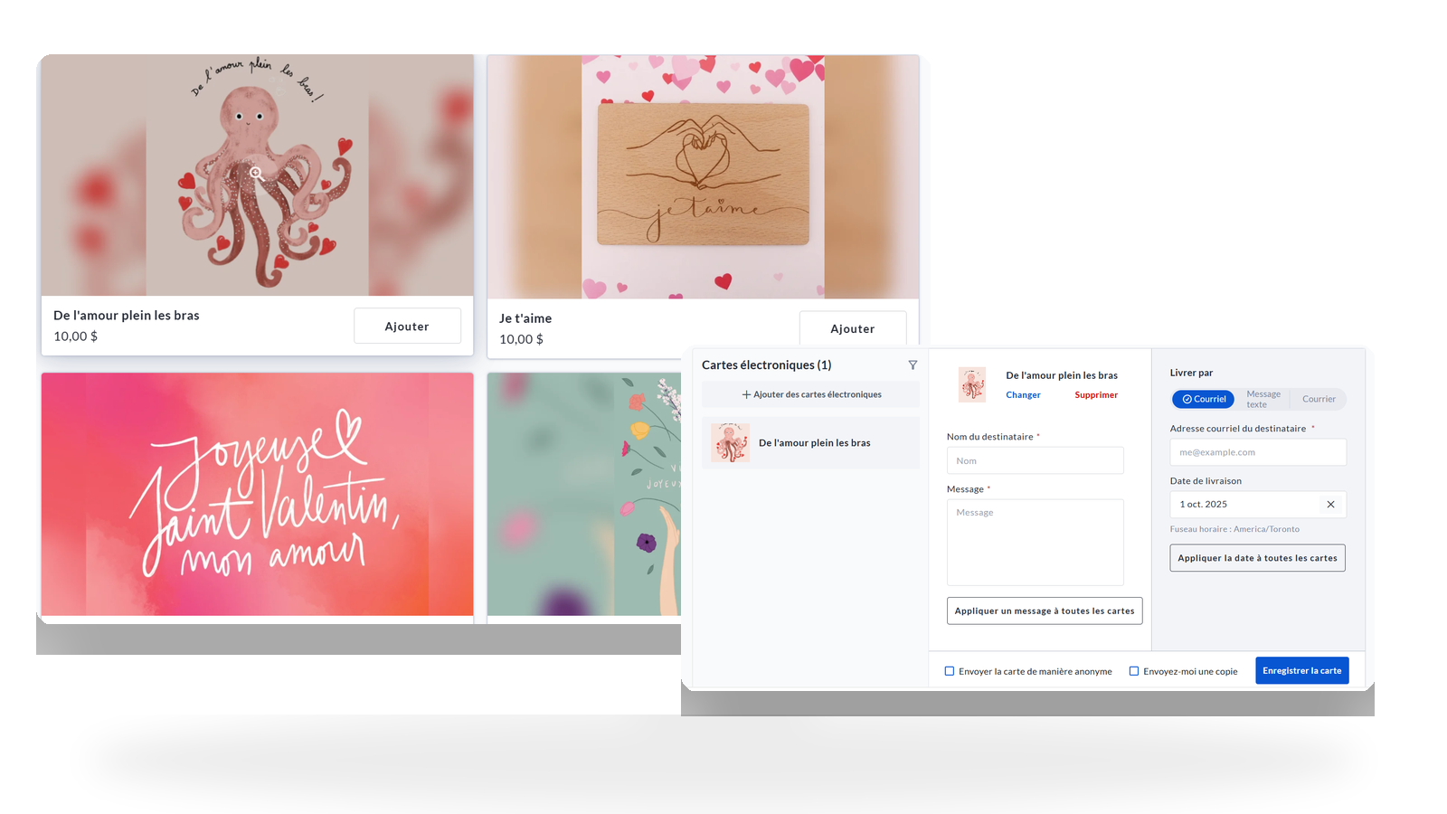 Cartes pour toutes les occasions, réunies au même endroit: Avec CrowdChange, vous pouvez créer une véritable boutique de cartes numériques où vos supporteurs peuvent acheter des cartes pour toutes les occasions — anniversaires, fêtes, célébrations et plus encore. Fixez vos propres prix, personnalisez les modèles et offrez à votre communauté une façon unique de donner tout en partageant quelque chose de significatif avec leurs proches. Les cartes peuvent être envoyées instantanément par SMS ou par courriel, et même livrées par la poste pour une touche encore plus spéciale.ouche d'originalité.